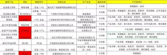 50批次贵金属首饰及制品中,合格27批次,14批次产品名称或标识不规范,不合格9批次,产品质量抽查合格率82%。不合格9批次产品中,主要是质量偏差、贵金属纯度项目不符合标准要求,其中周大生、中国黄金、中国珠宝、中国金店等品牌上榜。
