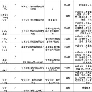 甘肃省市场监督管理局近日发布的“关于甘肃省2019年第2批工业产品质量省级监督抽查结果通报”显示,包括周大生、中国黄金、中国珠宝在内的多家知名品牌产品都检测出不合格,主要是质量偏差、贵金属纯度项目不符合标准要求等因素。中国金店回应称,不合格产品是加盟店私自采购。周大生则发布声明称,不合格产品陈列时间过长,经清洗抛光造成了重量偏差。