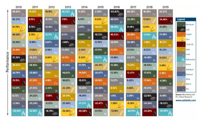 在汽车销量下滑的背景下,钯、铑的价格价格却出现了大幅上涨。2019年,美国轻型汽车销量下降超过1%,至1700万辆。在中国这个最大的汽车市场,12月份汽车销量同比下降3.6%,全年销量同比下降7.5%(来源:中国汽车工业协会),这是连续第二年出现下降。中国汽车工业协会预计,2020年汽车销量将下降2%,至2530万辆。