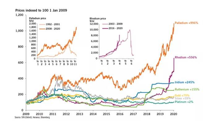 钯铑价格疯涨 但历史告诉我们暴跌终将来临