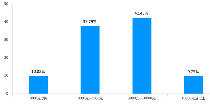 4、大多数受访者对黄金珠宝类产品的心理预算为 1000 元 ~10000 元。