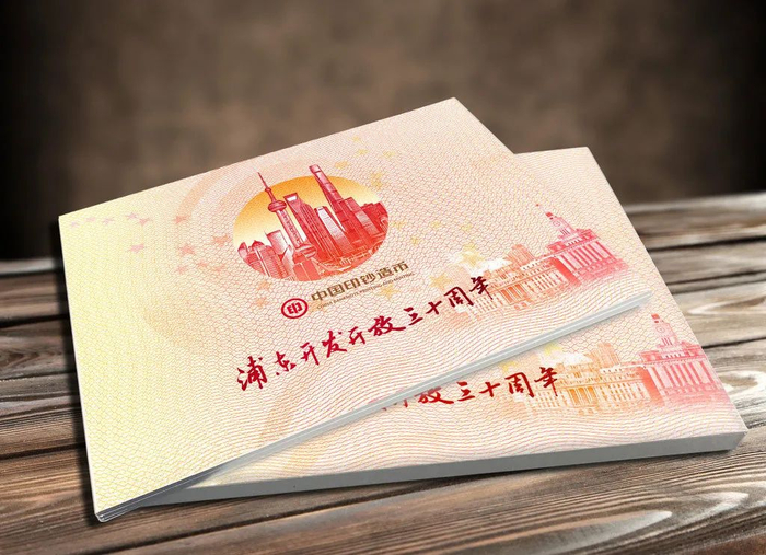 在浦东开发开放三十周年之际,由中共上海市浦东新区委员会宣传部授权,上海印钞有限公司设计印刷,中国印钞造币总公司权威发行一套《浦东开发开放30周年纪念券》。