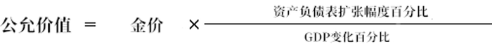 黄金的公允价值将与资产负债表中增加的货币成比例上升,但这一涨幅有时候会被GDP的增长部分抵消。举个例子,如果当年资产负债表和GDP都增长了5%,那么黄金的价值就会保持不变。但是,如果扩表速度大于GDP增长速度,那么黄金的公允价值就会增加。
