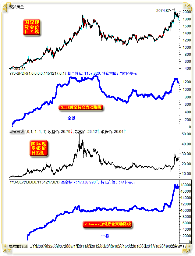 下图为全球最大的金银ETF在金银市场中的持仓演变历史:
