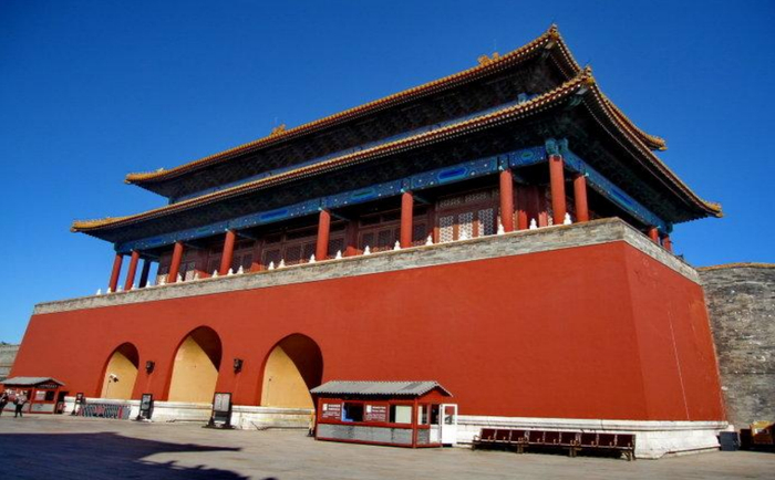然而紫禁城的门钉有一个例外,那就是东华门,是“纵九横八“ 。这其中的原因何在,有一种说法是东华门走”鬼“的,什么意思呢,就是皇帝驾崩后,大行皇帝的灵柩要从东华门走。可是根据历史记载,皇帝活着的时候貌似也走过东华门。显然这种说法不太靠谱。还有一个从古代建筑风水上解释,相对比较有说服力,因为东华门在东面,东方属木,而紫禁城的核心属土,按照五行相生相克的原理,木是克土的。而把门钉改为八九七十二颗,就成了阴数,北方的木也就变成了阴木,自然威力大减,不能克土了。