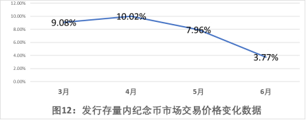 2021年上半年,发行存量中纪念币板块的市场交易价格变化见图12。