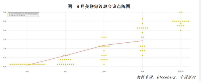 根据美联储9月议息会议公布的点阵图,有一半的美联储官员认为应该在2022年底前加息,与6月时相比又有所增加。同时,几乎所有官员都预计2023年加息幅度会更大。不过美联储明确表示退出资产购买和加息之间并没有直接关联,何时加息取决于未来美国经济扩张的具体情况。因此,每次的就业和通胀数据将会是决定未来政策路径的重要因素。