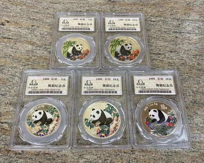 现实中我们见过性情温和,憨态可掬的国宝熊猫,也在纪念币上见到了熊猫食竹、爬树、喝水、滑雪等生活场景。在我的收藏阅历中,我见过金光闪闪的熊猫金币,也见过银光灿灿的熊猫银币,还见过五彩斑斓的彩银猫……