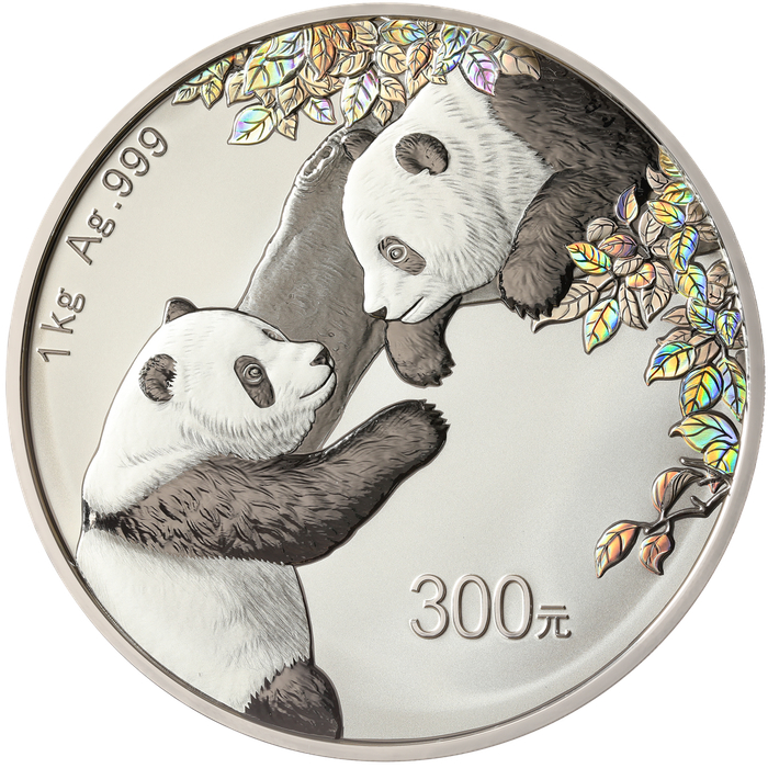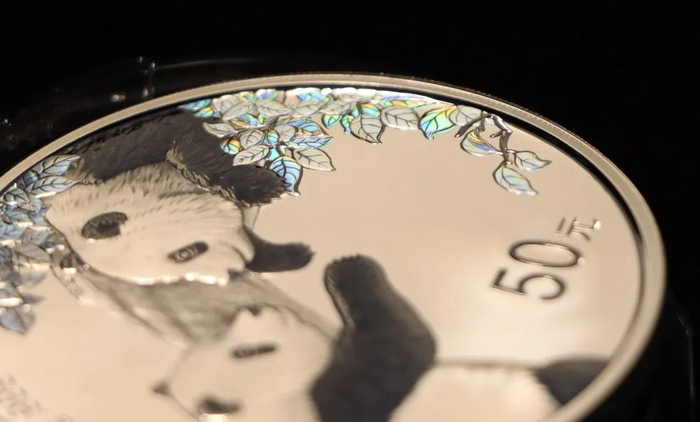 2023版熊猫150克银币和1公斤银币,背面留白区域采用了喷砂工艺,让画面更加饱满。同时,这两枚银币还采用了“原子层沉积镀膜”新工艺。而币面最大的亮点就是枝叶部分采用了光变鳞彩工艺,这也是光变鳞彩工艺首次在熊猫币上运用。
