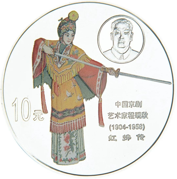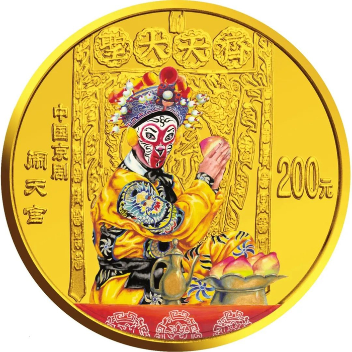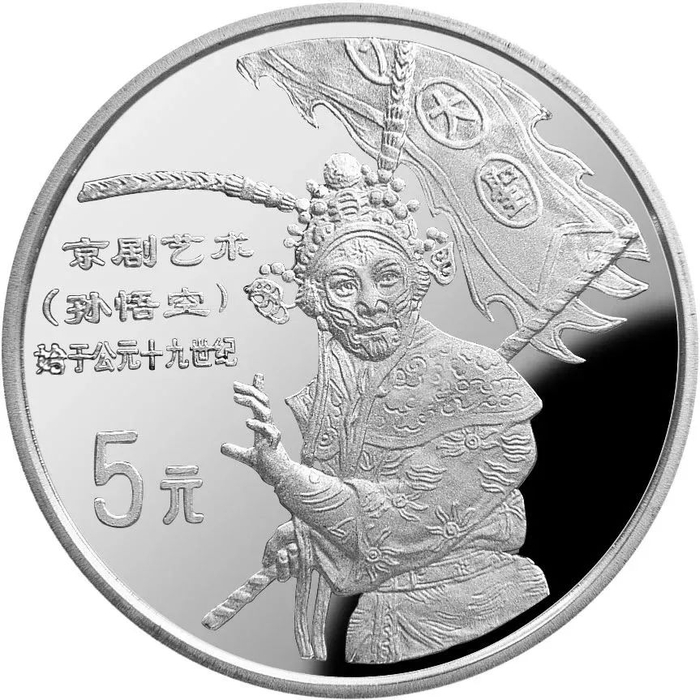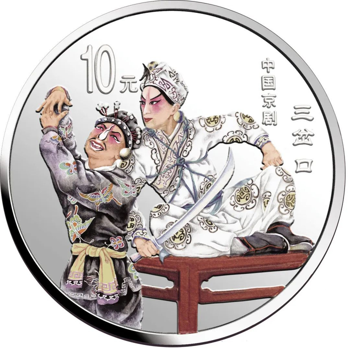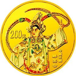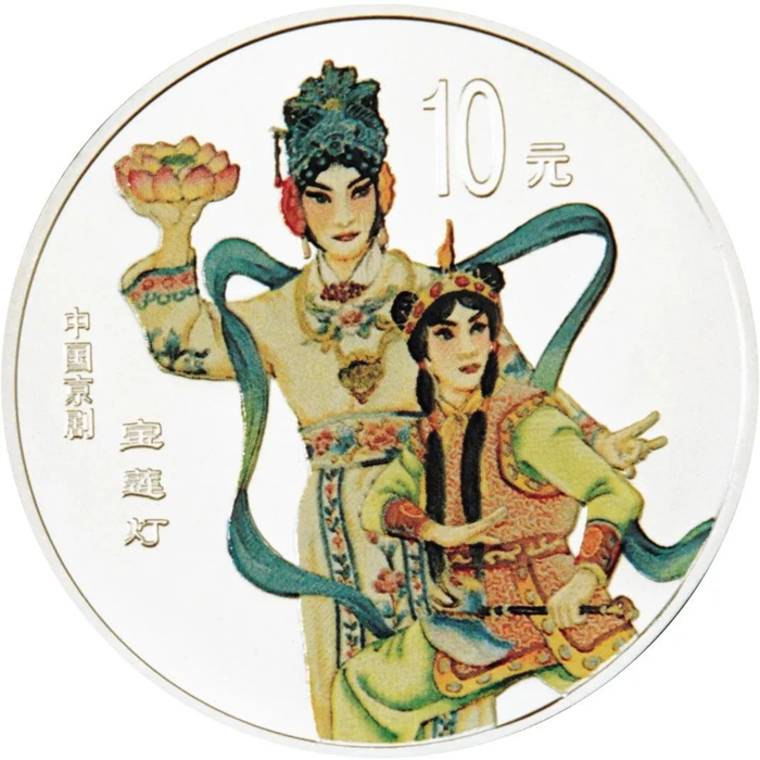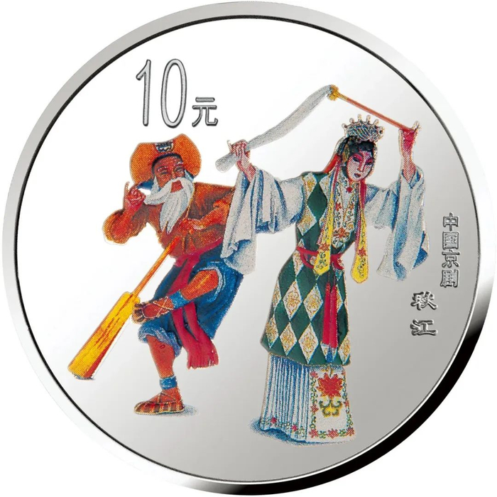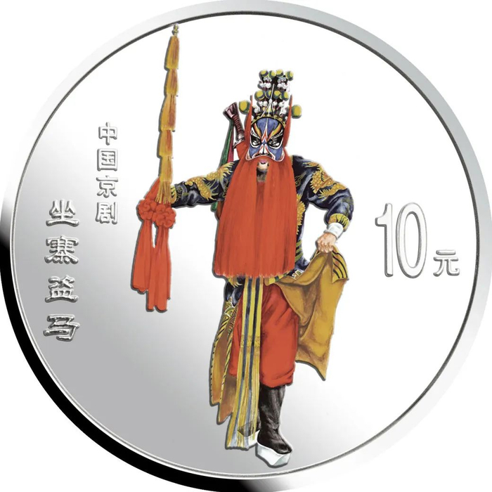 中国人民银行于1999年-2002年,发行了中国京剧艺术彩色金银纪念币(1-4组),每组包括1/2盎司圆形金币一枚,5盎司长方形银币一枚和1盎司圆形银币四枚,共计24个品种,在我国现代贵金属纪念币家族中,是较大规模的系列项目,而且全套金银币均为彩色工艺,生动地再现了经典剧目。
