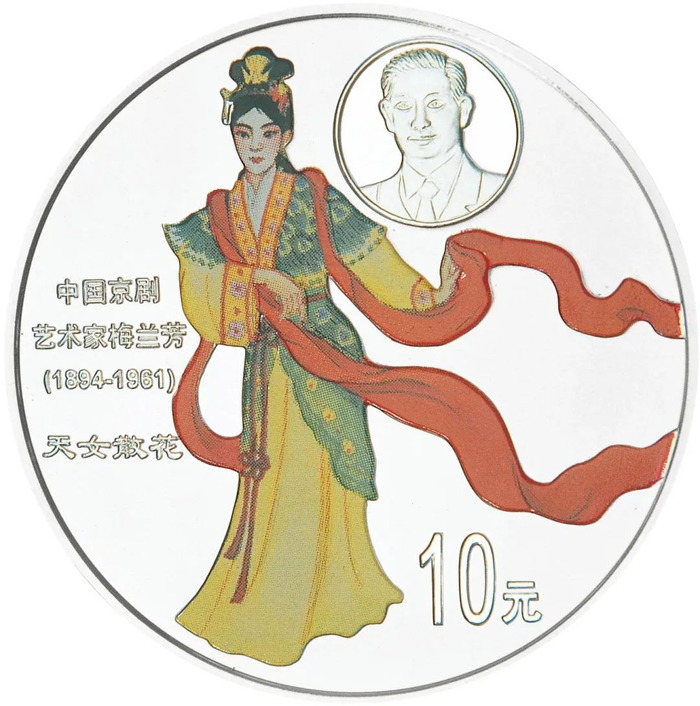 该系列四组1盎司银币选材也是各有侧重。其中第1组银币背面图案取材于京剧四大名旦及其作品:《天女散花》《红娘》《汉明妃》和《红拂传》。