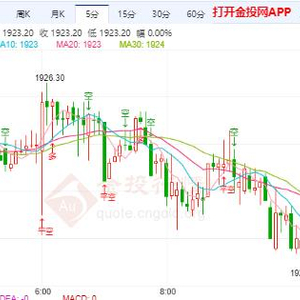 周一(9月25日)本交易日现货黄金维持跌势,今日开盘报1924.74美元/盎司,最高触及1926.30美元/盎司,最低触及1922.36美元/盎司,截止发稿金价报1923.18美元/盎司,跌幅0.09%。