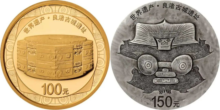 世界遗产(良渚古城遗址)8克金币/500克银币