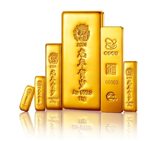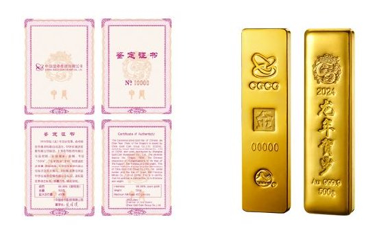 中国金币集团有限公司将于11月16日正式发行2024甲辰(龙)年贺岁金条一套,全套共6个规格,分别是1000克、500克、200克、100克、50克和30克;最大发行量分别为140条、400条、1500条、11900条、18000条和9000条,成色均为99.99%纯金 。