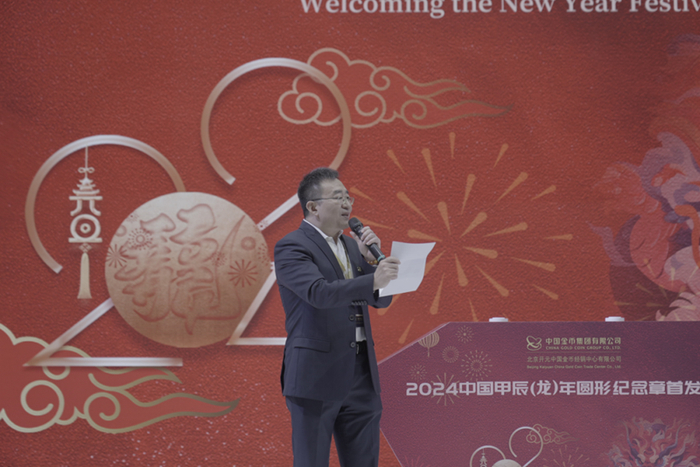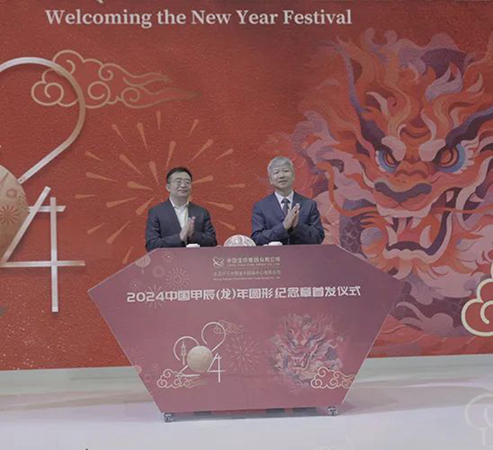 为庆祝新春、传承民族经典、弘扬民俗文化,2023年12月1日,2024中国甲辰(龙)年圆形纪念章在国家会议中心2023北京国际钱币博览会璀璨绽放,中国金币集团有限公司副总经理李泽云、北京开元中国金币经销中心有限公司总经理李波出席首发仪式。