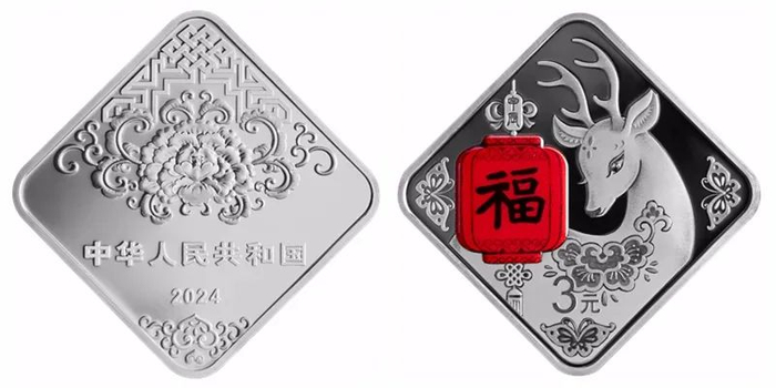 该套2024年贺岁金银币中的8克银币采用了菱形形制,这是中国人民银行首次发行该形制的纪念币。它不仅在形制上十分特殊,还开启了异形贺岁币的新纪元,极具新意和开创性,在我国货币发行史上有着重要而深远的意义。