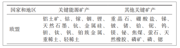 欧盟在2011年首次发布14种战略性关键矿产名录,2014年对名录调整和更新后扩大至20种,此后每3年更新一次,最新版本的矿产种类已由2017年的26种扩充至2020年的30种,如果按2024年3月正式审批通过的《关键原材料法案》的标准来看,欧盟已将锂钴镍、稀土、铂族金属等多种战略性关键矿产纳入其34种关键原材料清单。