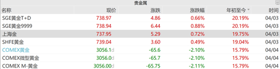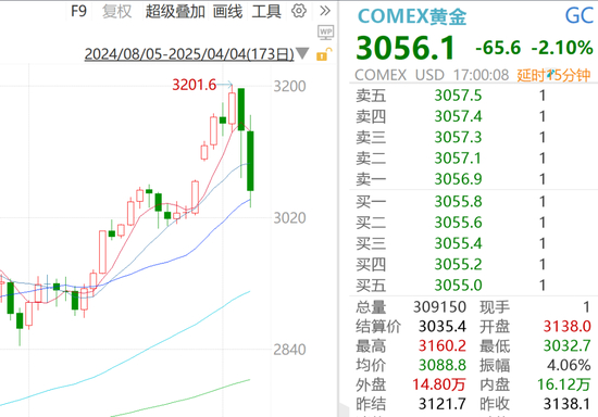 当地时间4月4日,黄金大幅收跌,现货黄金跌2.47%,报3037.31美元/盎司;COMEX黄金期货跌2.1%,报3056.1美元/盎司。
