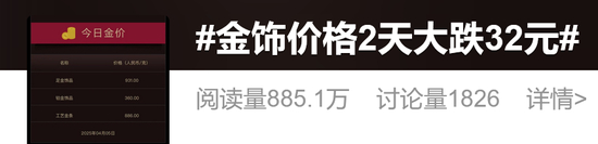 #金饰价格2天大跌32元##金价连续跳水#等话题,冲上热搜!