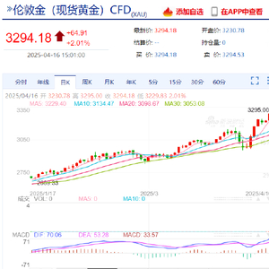 4月16日,现货黄金向上触及3290美元/盎司,最高价报3295美元/盎司,续刷历史新高!持续升级的美方乱局引发投资者对经济连锁反应的担忧,继续巩固传统避险资产黄金的需求。投资者正密切关注美联储主席鲍威尔关于利率路径的讲话(政策立场解读)、美方半导体与医药产品税具体实施方案以及中美后续贸易磋商进展。