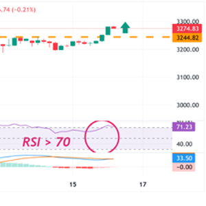 黄金价格牛市可能需要等待一些盘整或适度回调,因为相对强弱指数(RSI)显示超买。