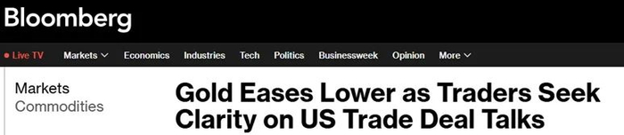 美国彭博社周一报道称,由于投资者等待美国总统特朗普设定的7月9日关税期限之前美国贸易谈判的进展,金价在上周上涨近2%后回落。