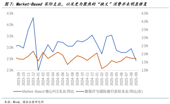 结合早些时候公布的月频PCE数据,从最为准确的基于市场价格的实际核心支出水平,同比增速在第三季度依然处于下台阶的过程中。