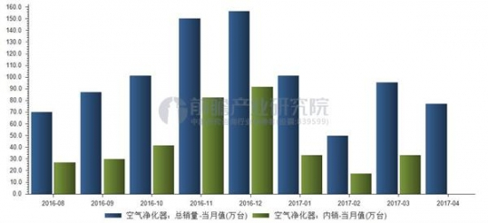 2017年上半年,数据统计,空气净化器市场销售额为79亿元,同比增长47.3%,成为家电市场增速第二高的品类。虽然空净市场进入全年销售淡季,但对比去年同期,规模同比仍处于较高水平,说明消费者对于环境健康电器的消费意识较去年同期有了较大幅度的提升。