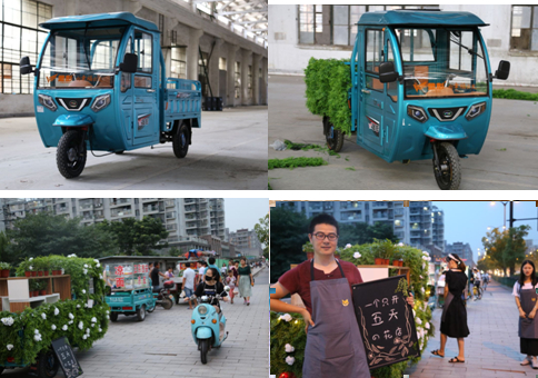 “车可创意”负责人方轲介绍,最初和小伙伴们开玩笑的时候,说要改造一辆三轮车去夜市卖花或者去早市卖煎饼。说干就干,这个年轻的团队立马付诸行动!