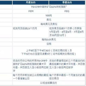 作为在交易所场内交易的电子盘产品,香港交易所的铁矿石期货旨在进一步改善铁矿石衍生品市场的价格发现过程,为市场参与者提供最大的价格透明度和公平的市场准入机会。