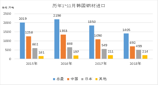 2、韩国历年分品种/国别钢材进口总览