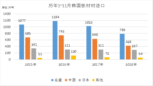 图9:2015-2018年韩国板材进口量(单位:万吨)