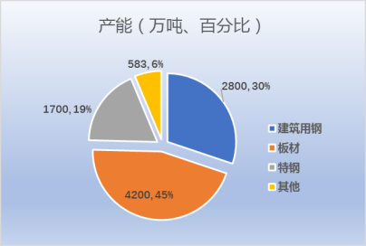 3、各钢材品种板块的产能分布情况