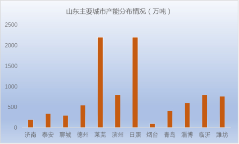 图1:山东地区钢铁产能分布情况(单位:万吨)