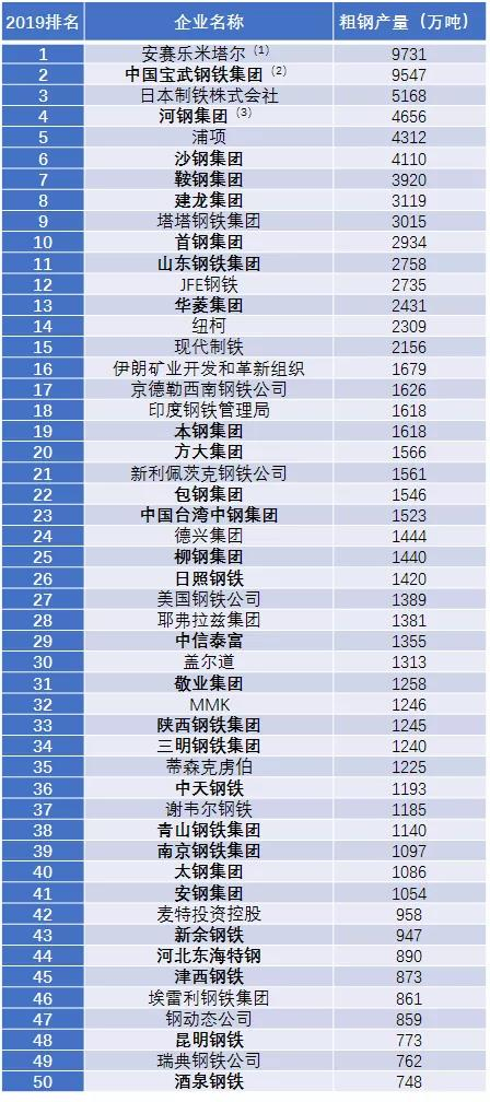 原标题:2019年全球50大钢铁企业排行榜发布 来源:中国冶金报
