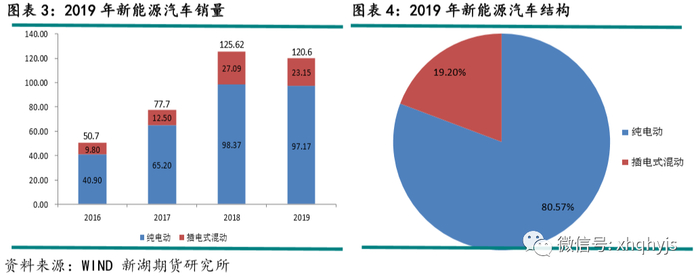 目前市面上销售的新能源汽车主要分为两种,一种为纯电动汽车,另一种为插电混合动力汽车。从2016年开始新能源汽车中,纯电动汽车的销量占总销量的比例稳定在80%,而插电混动的比例为20%。预计此后几年该比例保持稳定。按照铜业发展协会的数据来看,普通汽车耗铜量大概有20kg,而插电混合动力汽车平均每辆车耗铜量为60kg,纯电动汽车耗铜量为在83kg。