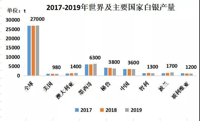 标题读起来自相矛盾,既然是世界排名第三的产银大国,为何还极缺?不可思议。根据美国地质调查局(USGS),2019年中国白银储量为4.1万吨,世界排名第五。世界白银协会相关数据表明,2019年中国白银产量3600吨,世界第三。