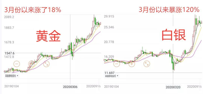 但如果知道白银也涨了,而且涨得更猛时(3月以来,黄金涨了18%,白银涨了120%),或许取代她们笑脸的是,瞬间皱起额眉:丫的,净顾黄金去了