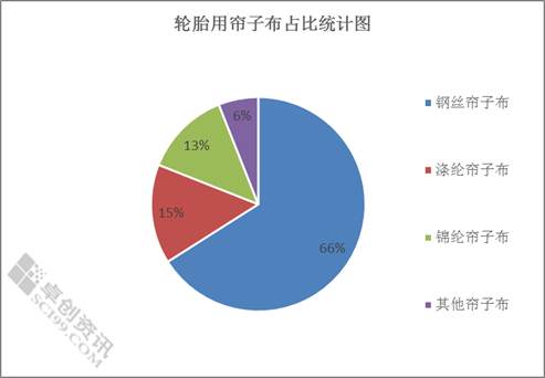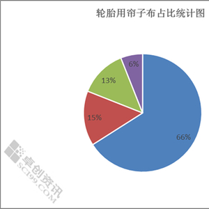 根据调研数据显示,钢丝帘子布占比最大,约为66% ,因其在汽车轮胎中广泛使用,加之市场子午化率逐步提升,因此有很大的需求空间,其次是纤维级帘子布主要以涤纶帘子布和锦纶帘子布为主,占比相差不大,但从成本来看却存在一定差异,再者其他帘子布占比较小。