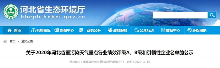 原标题:河北省重污染天气绩效评级A、B级钢企名单公示 来源:河北省生态环境厅