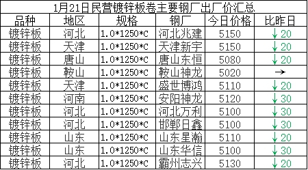 1.21日涂镀板卷盘点: