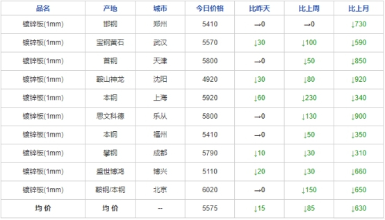 镀锌板卷钢厂调价汇总: