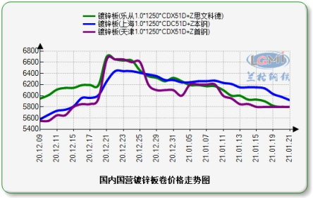 主要代表国营钢厂镀锌板卷价格走势图: