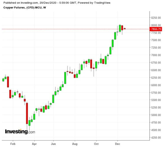 而随着新冠疫苗的接种步伐加快,全球经济料将反弹,这或再次助长铜的涨势。有分析人士指出,铜价在2021年预计全年料上涨约27%。