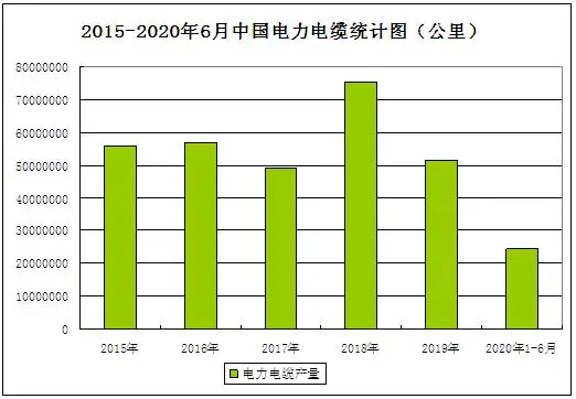 据悉,2020年6月中国电力电缆产量为4801481公里,同比增长10.34%;2020年1-6月中国电力电缆产量为24291735公里,同比增长2.43%,其中对于铜材的需求量可想而知。