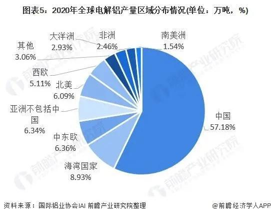 中国电解铝产量占据全球57.18%