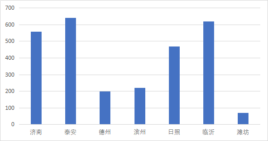 图1:2020年之前山东主要城市建材产能分布(万吨)