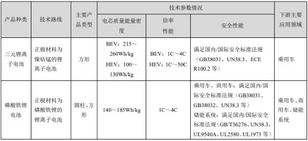 另外,其年报也显示了宁德时代在2020年重点向市场供应的产品技术参数。其中,用于乘用车市场的三元电池,单体能量密度在215~260Wh/kg之间;HEV电池能量密度在100~130Wh/kg之间。
