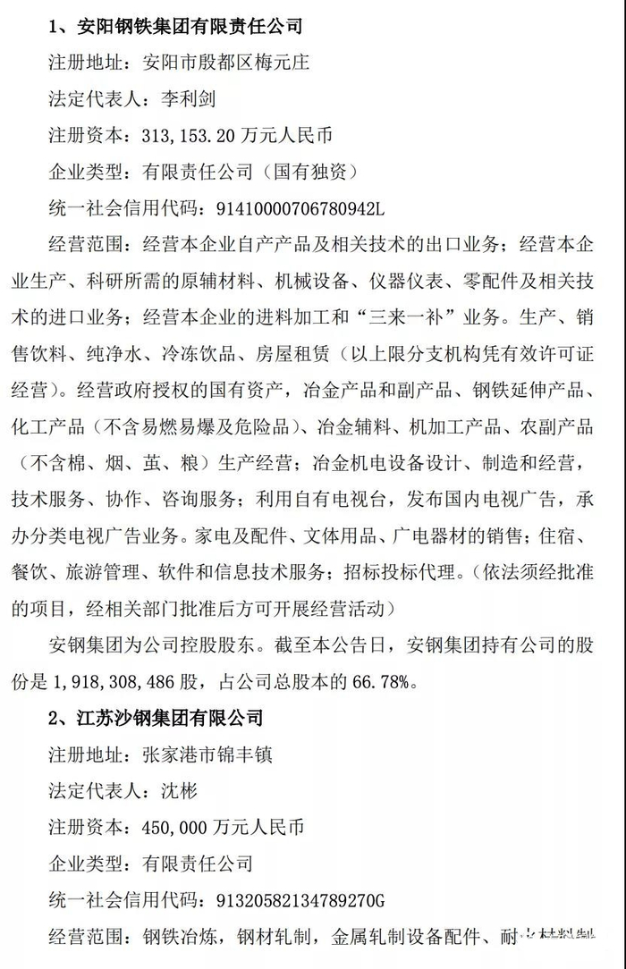 3、沙钢集团有意向以市场化、法制化原则参与安钢集团的混合所有制改革,并成为安钢集团的控股股东,公司股权结构和实际控制人存在发生变动的可能性。截止目前,公司的控股股东为安钢集团,实际控制人为河南省人民政府国有资产监督管理委员会。