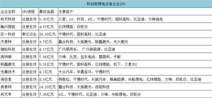 其中,已有10家锂电设备企业在科创板上市,另一家设备企业也上市在即,这意味着这一批锂电设备企业科创板IPO的成功率近乎100%。